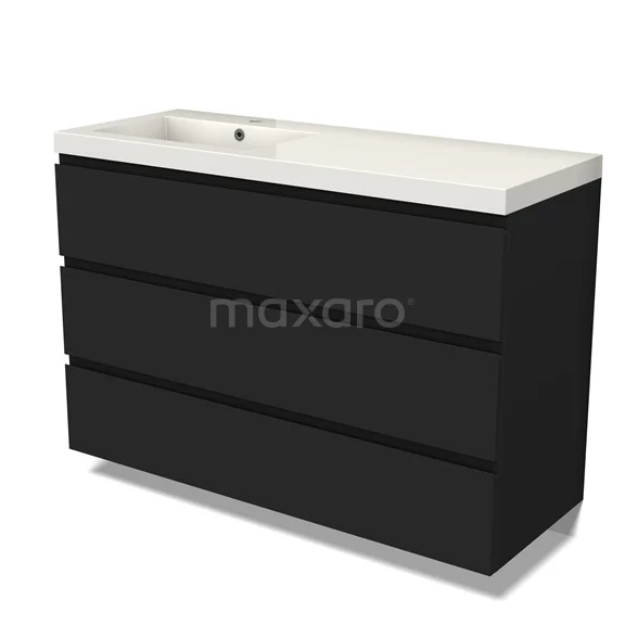 Modulo Bathroom furniture with sink | 120 cm Matte black Handle-less front Mineral marble 3 drawers