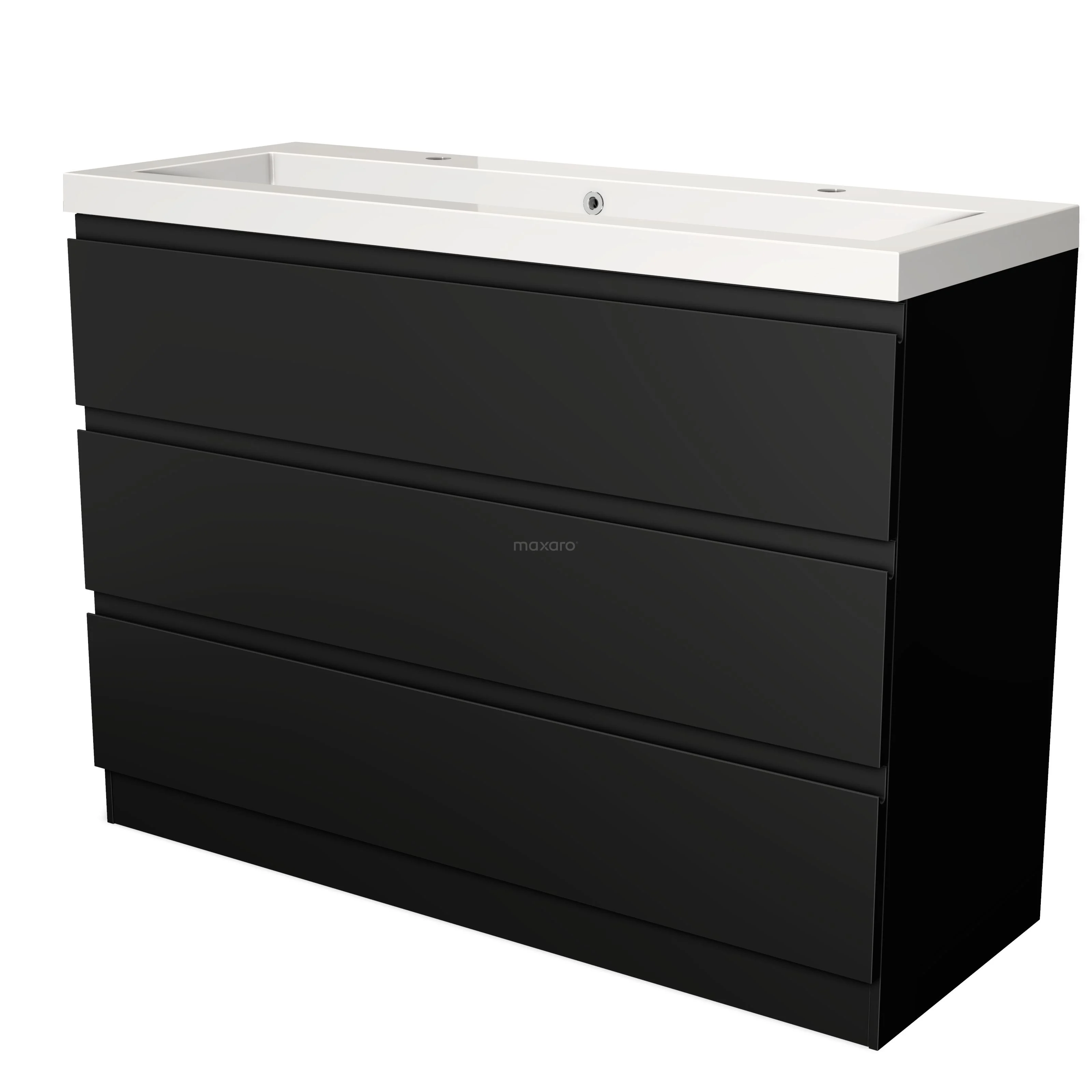 Modulo Bathroom furniture with sink | 120 cm Matte black Handle-less front Mineral marble 3 standing drawers