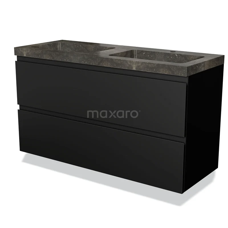 Modulo Bathroom furniture with sink | 120 cm Matte black Handle-less front Natural stone 2 Stacked drawers