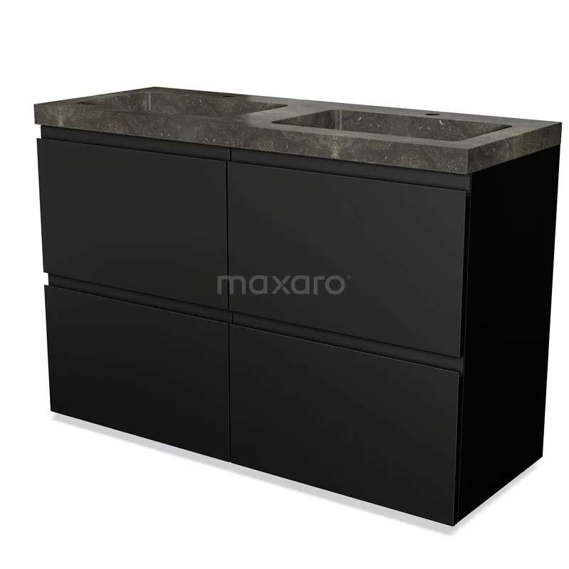 Modulo Bathroom furniture with sink | 120 cm Matte black Handle-less front Natural stone 4 high drawers