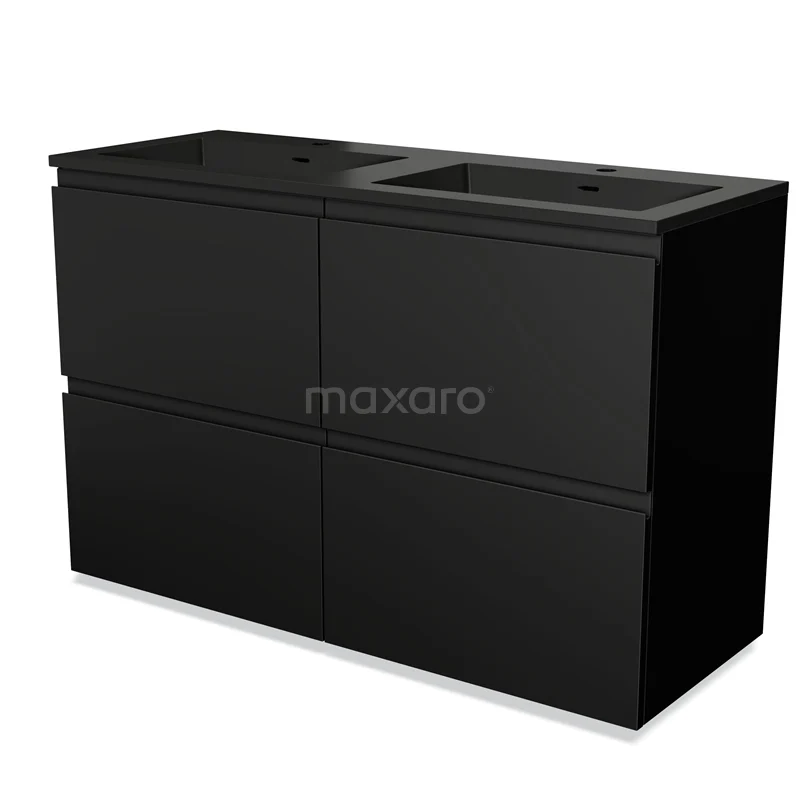 Modulo Bathroom furniture with sink | 120 cm Matte black Handle-less front Quartz 4 high drawers