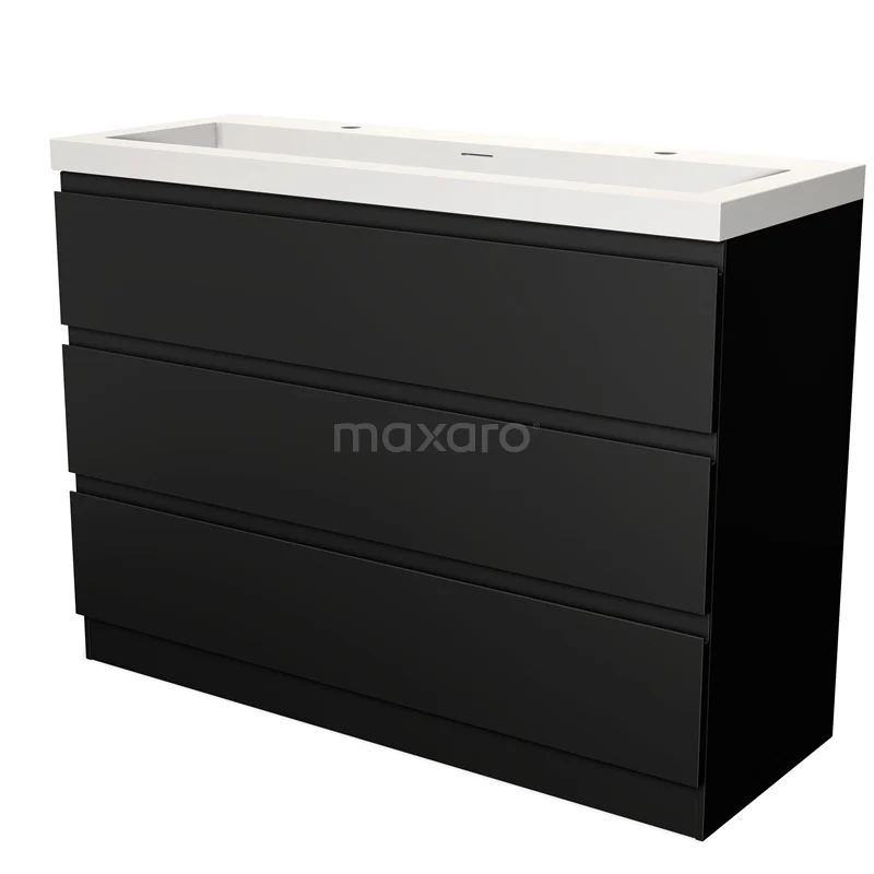 Modulo Bathroom furniture with sink | 120 cm Matte black Handle-less front Solid surface 3 standing drawers