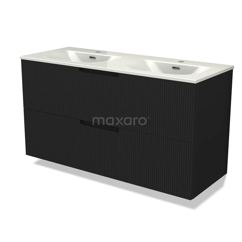 Modulo Bathroom furniture with sink | 120 cm Matte black Line front Ceramic 2 Stacked drawers