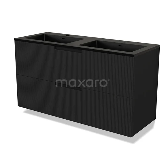Modulo Bathroom furniture with sink | 120 cm Matte black Line front Quartz 2 Stacked drawers