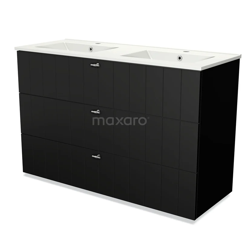 Modulo Bathroom furniture with sink | 120 cm Matte black Slat front Ceramic 3 drawers