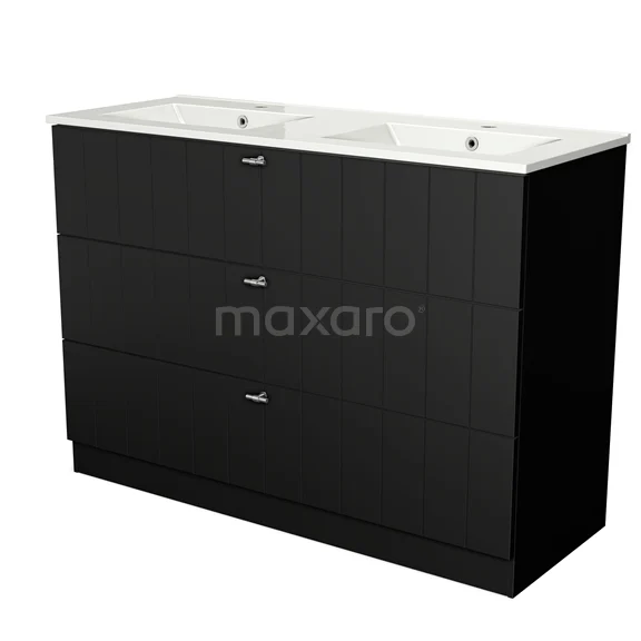 Modulo Bathroom furniture with sink | 120 cm Matte black Slat front Ceramic 3 standing drawers