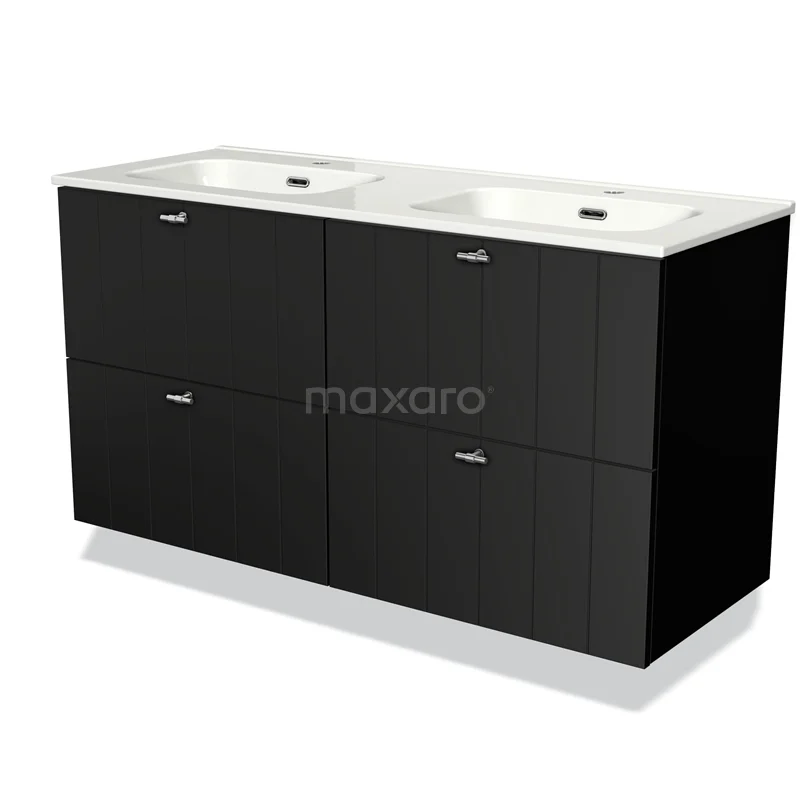 Modulo Bathroom furniture with sink | 120 cm Matte black Slat front Ceramic 4 drawers