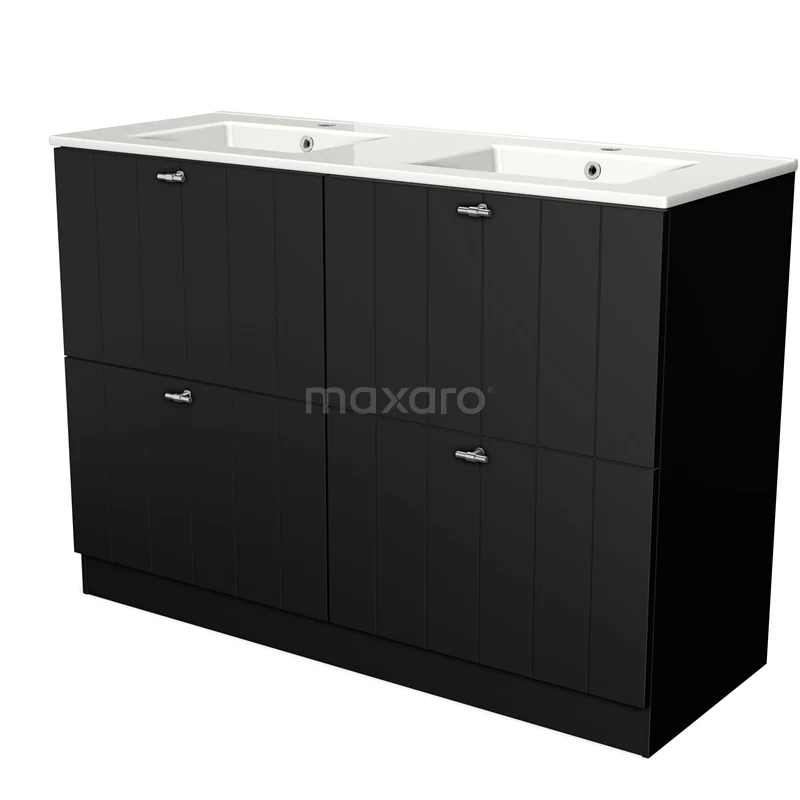 Modulo Bathroom furniture with sink | 120 cm Matte black Slat front Ceramic 4 standing high drawers
