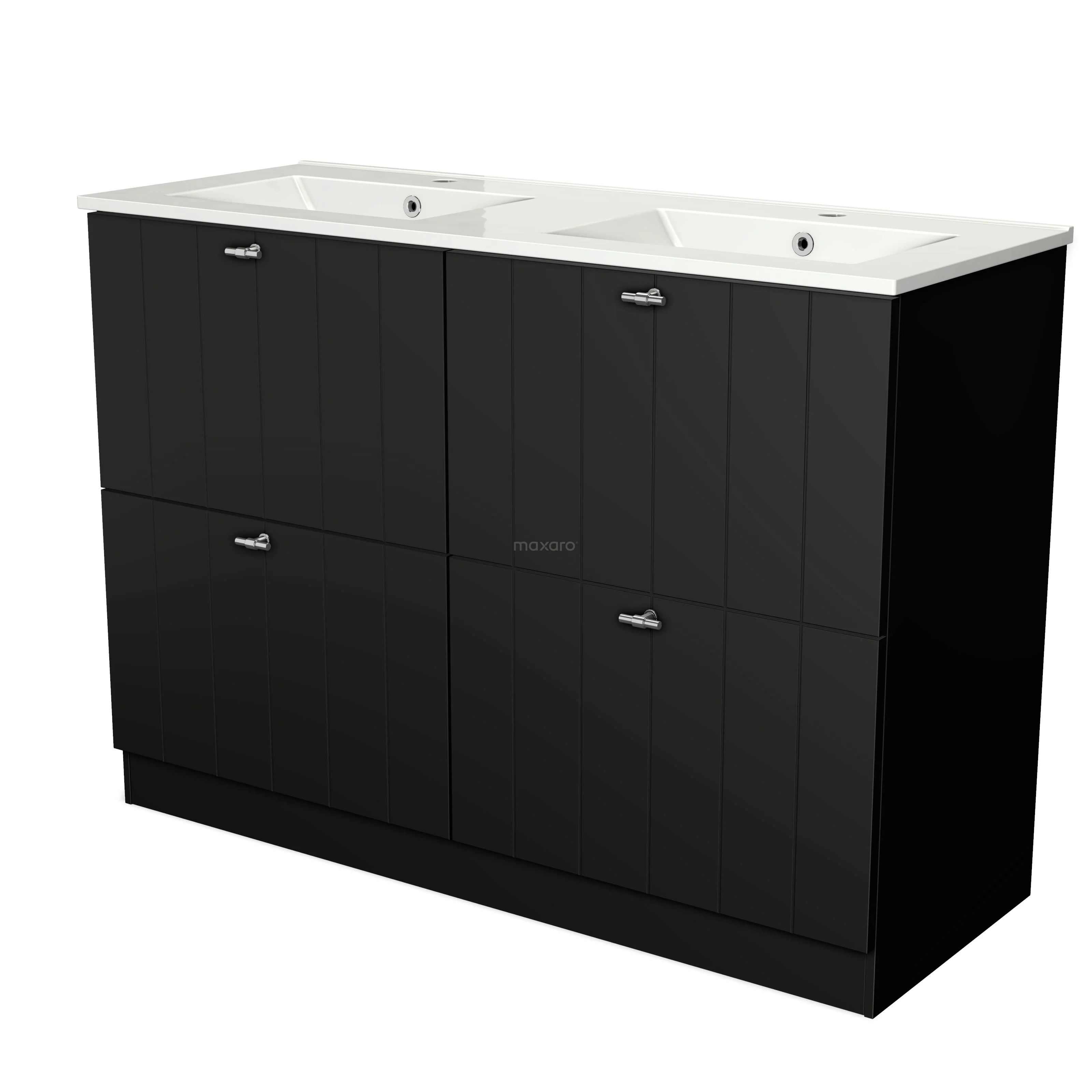 Modulo Bathroom furniture with sink | 120 cm Matte black Slat front Ceramic 4 standing high drawers