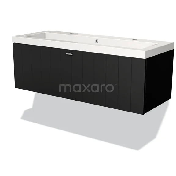 Modulo Bathroom furniture with sink | 120 cm Matte black Slat front Mineral marble 1 drawer