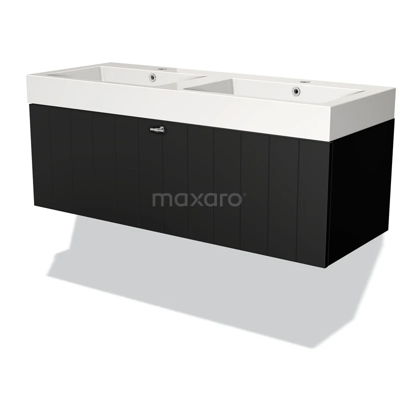 Modulo Bathroom furniture with sink | 120 cm Matte black Slat front Mineral marble 1 drawer