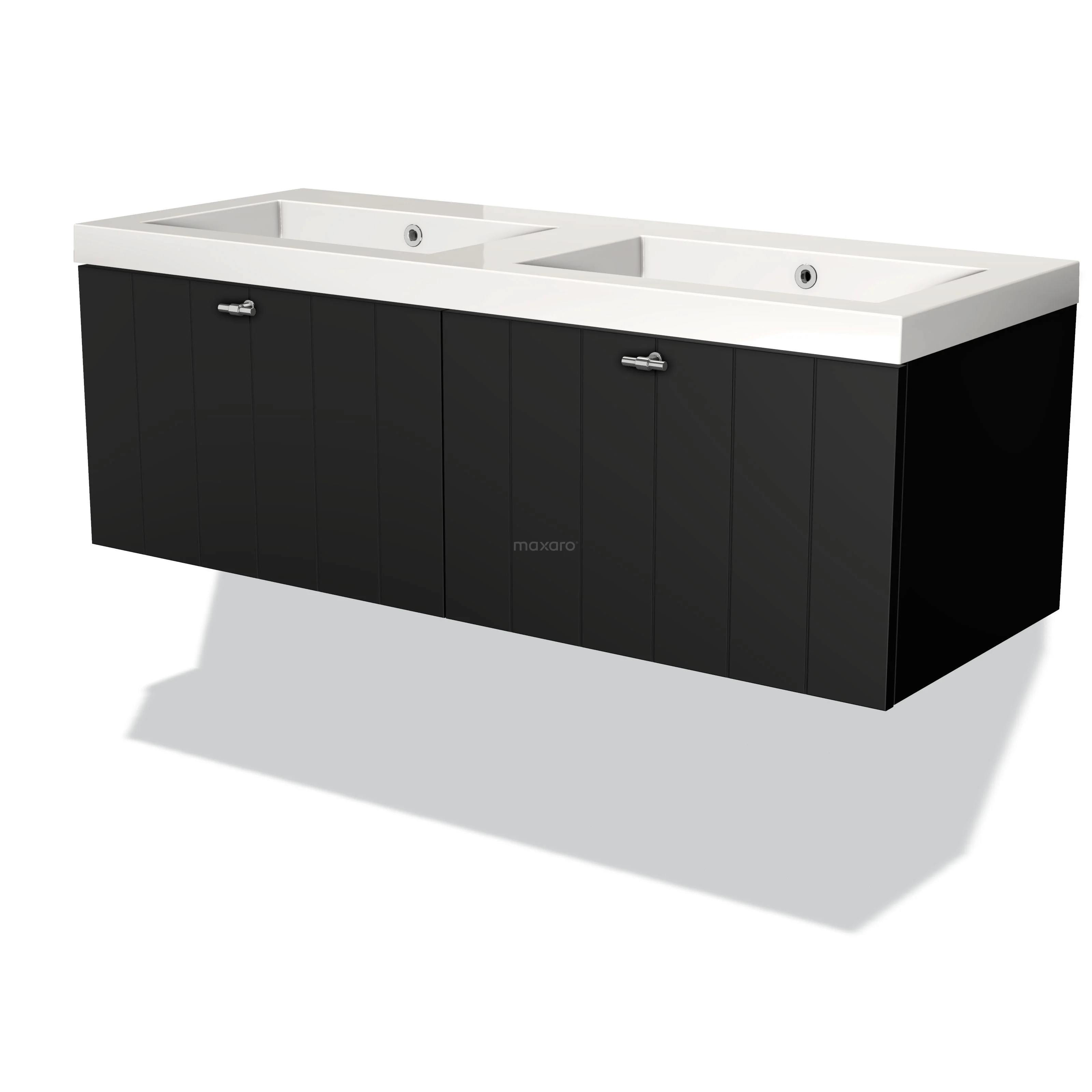 Modulo Bathroom furniture with sink | 120 cm Matte black Slat front Mineral marble 2 Side-by-side drawers