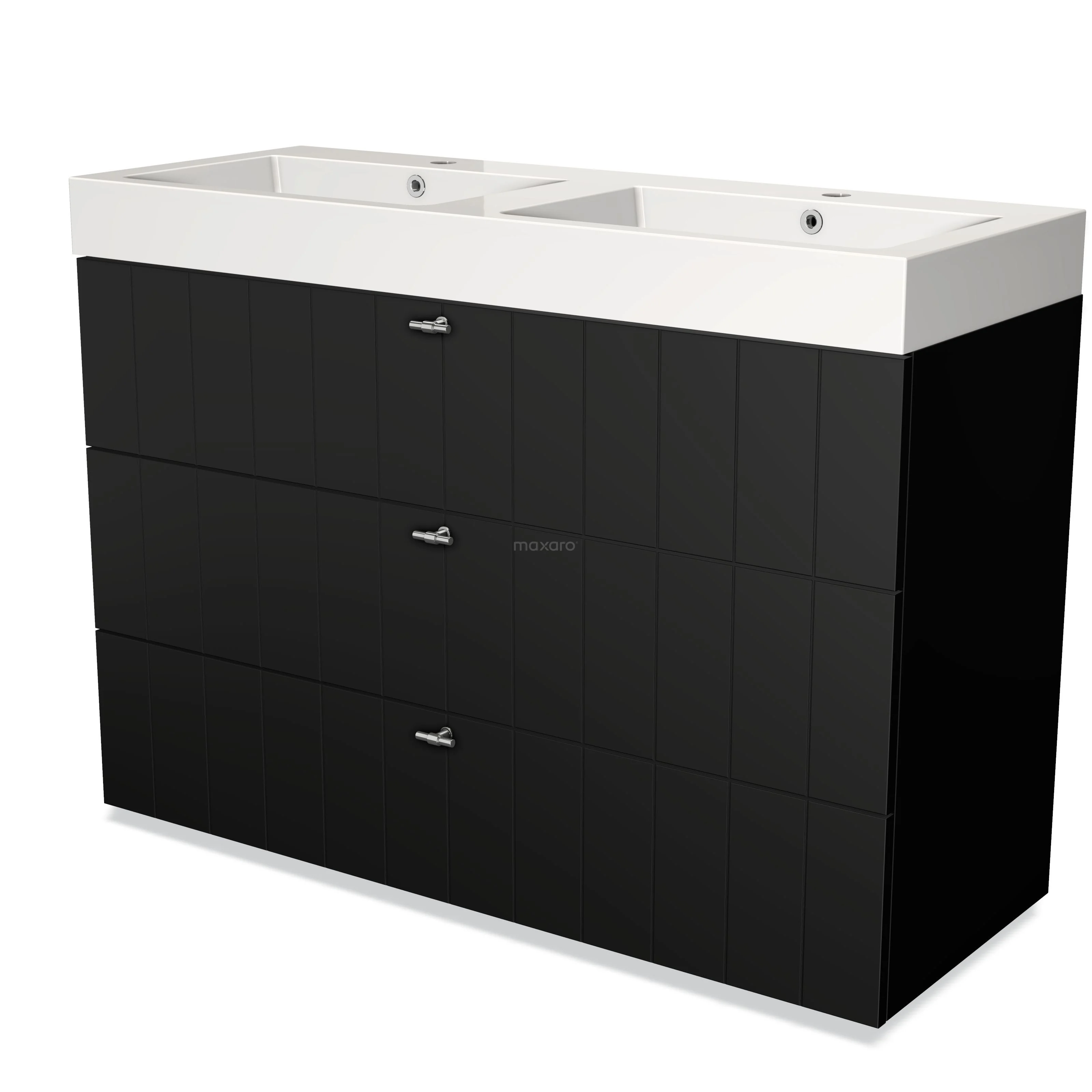 Modulo Bathroom furniture with sink | 120 cm Matte black Slat front Mineral marble 3 drawers