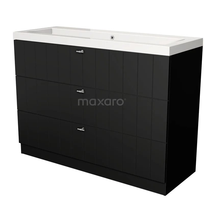 Modulo Bathroom furniture with sink | 120 cm Matte black Slat front Mineral marble 3 standing drawers