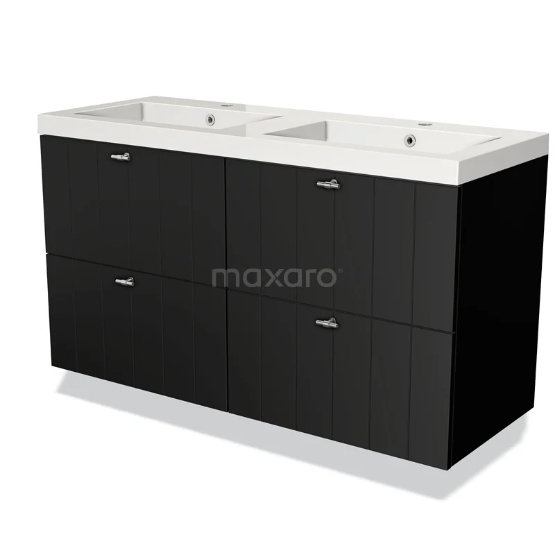Modulo Bathroom furniture with sink | 120 cm Matte black Slat front Mineral marble 4 drawers
