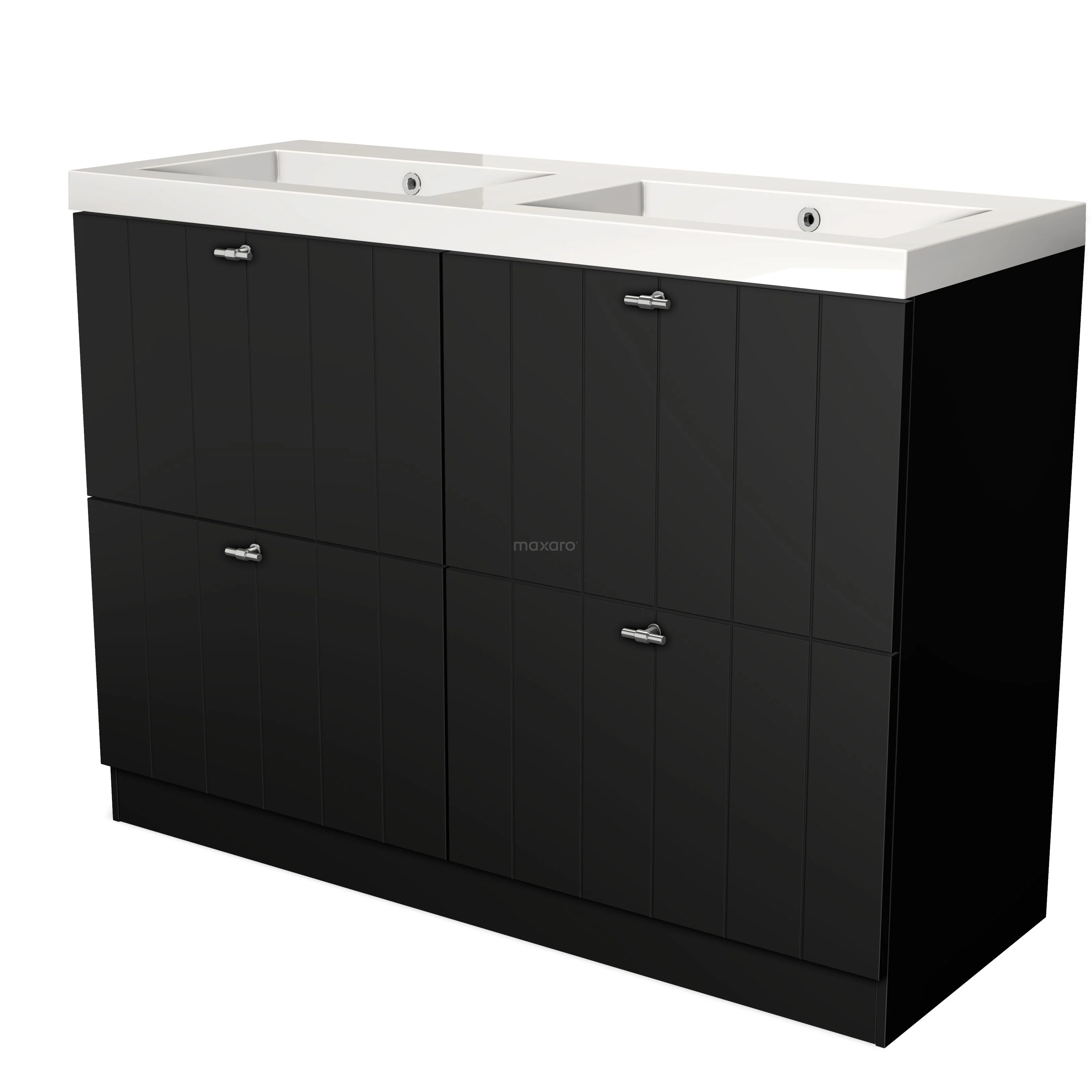Bathroom unit complete A beautiful basin tap should not be missing from the bathroom unit. At Maxaro, you will discover taps in stainless steel, chrome, copper, gold, black metal and black chrome, among others. So you will always find a model to match the unit and your bathroom. For even more storage space and to complete the room, choose a matching bathroom cabinet.