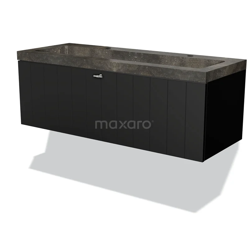Modulo Bathroom furniture with sink | 120 cm Matte black Slat front Natural stone 1 drawer