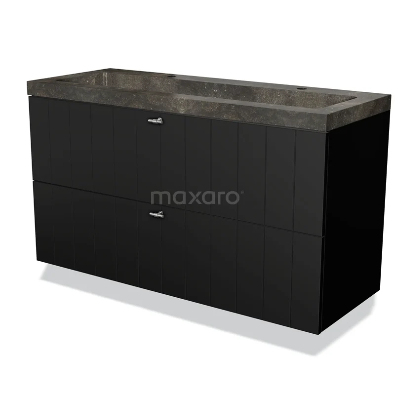 Modulo Bathroom furniture with sink | 120 cm Matte black Slat front Natural stone 2 Stacked drawers