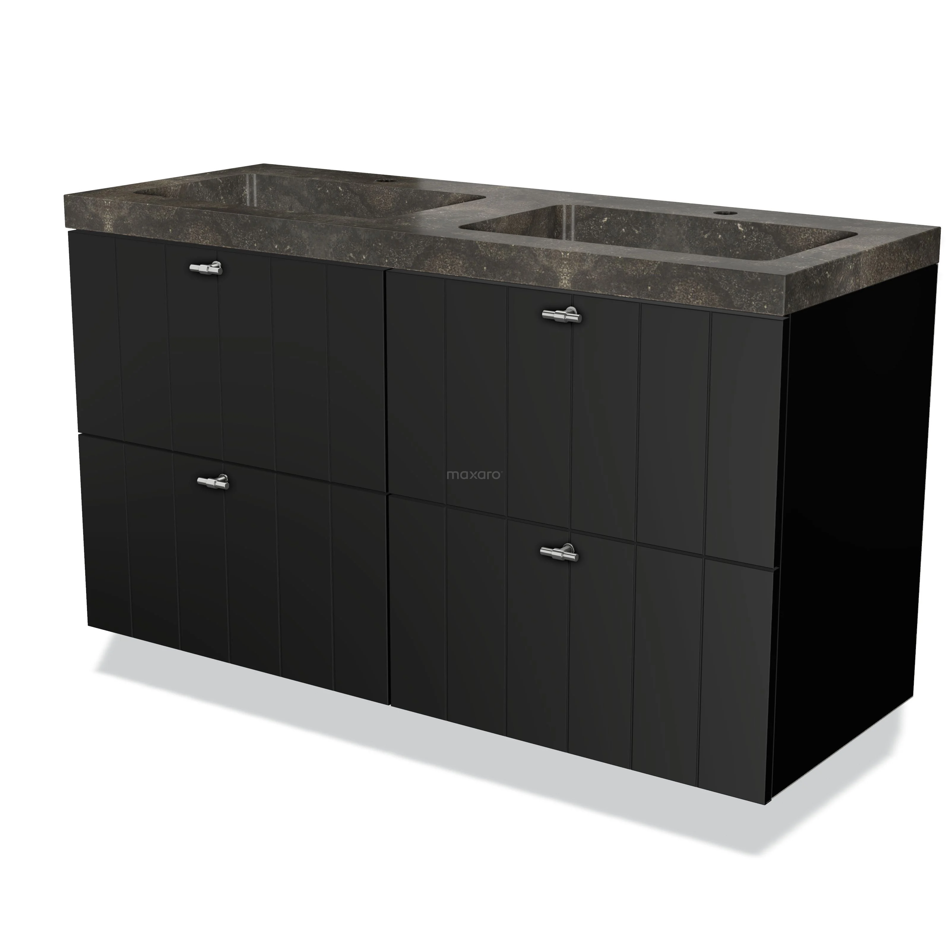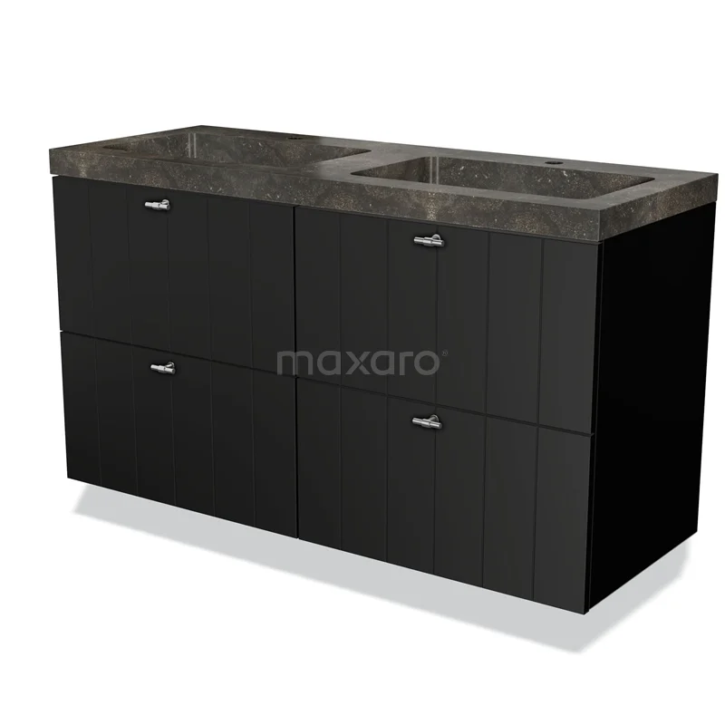 Modulo Bathroom furniture with sink | 120 cm Matte black Slat front Natural stone 4 drawers