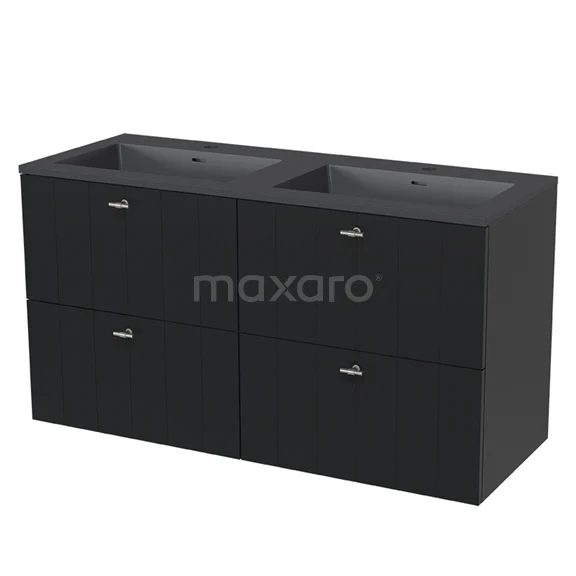 Modulo Bathroom furniture with sink | 120 cm Matte black Slat front Quartz 4 drawers