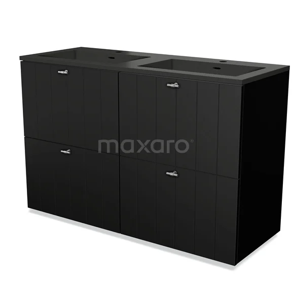 Modulo Bathroom furniture with sink | 120 cm Matte black Slat front Quartz 4 high drawers
