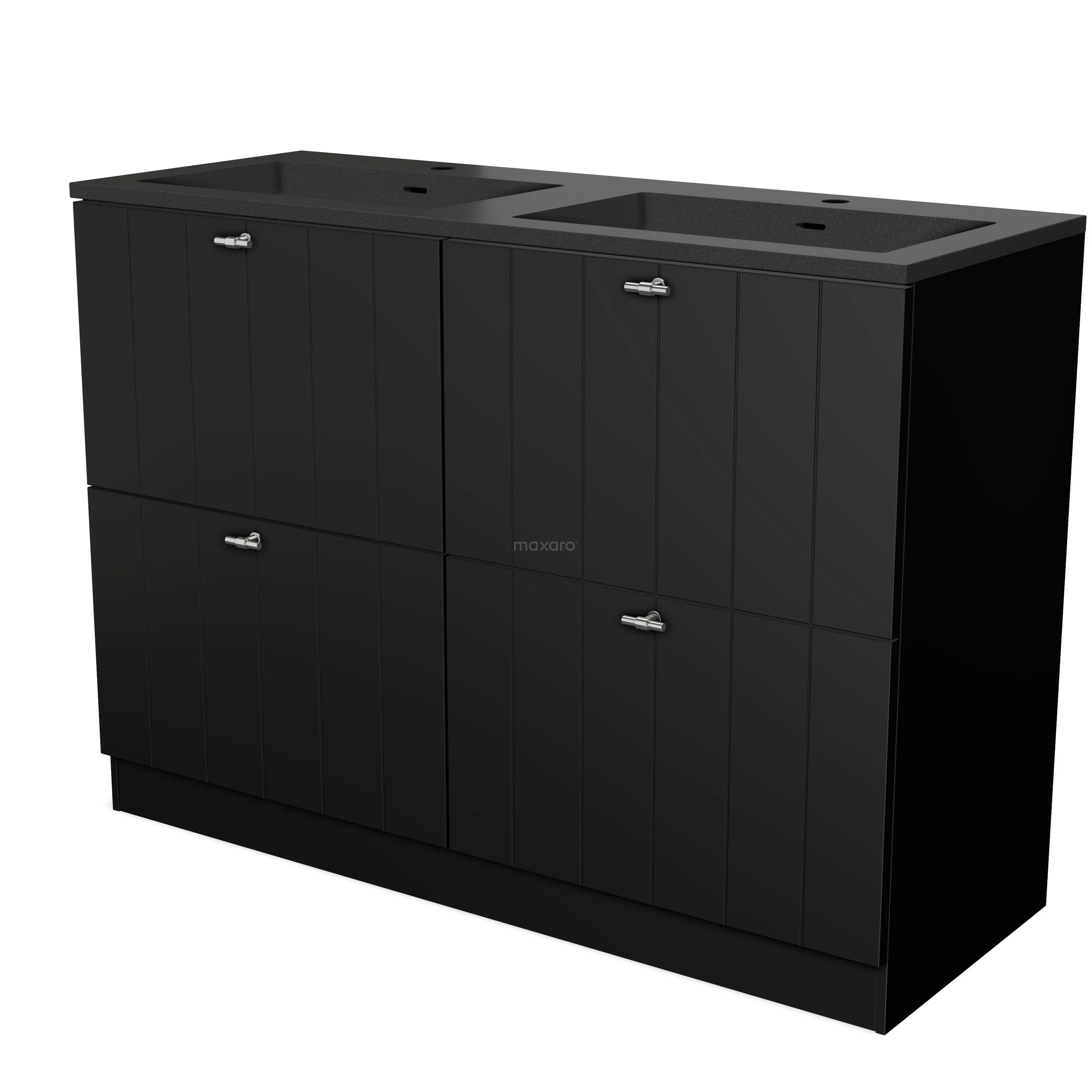 Modulo Bathroom furniture with sink | 120 cm Matte black Slat front Quartz 4 standing high drawers