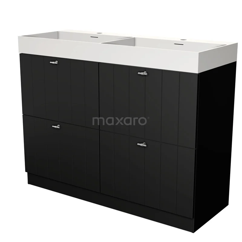 Modulo Bathroom furniture with sink | 120 cm Matte black Slat front Solid surface 4 standing high drawers