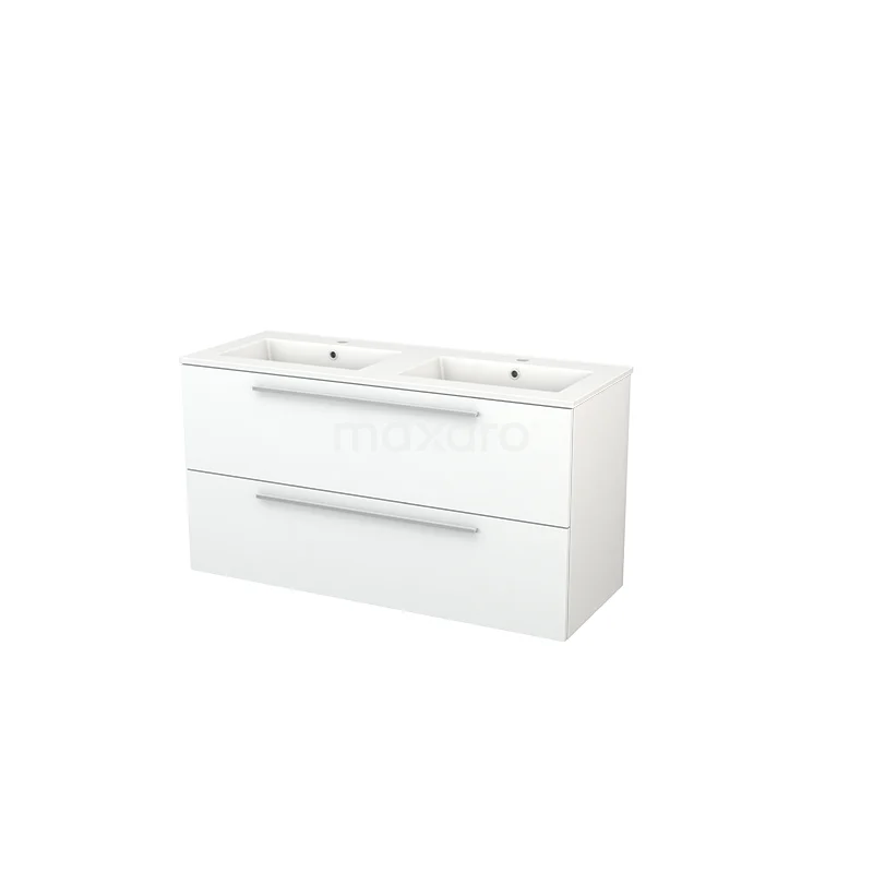 Modulo+ Bathroom furniture with sink | 120 cm Matte white Flat front Ceramic 2 Stacked drawers