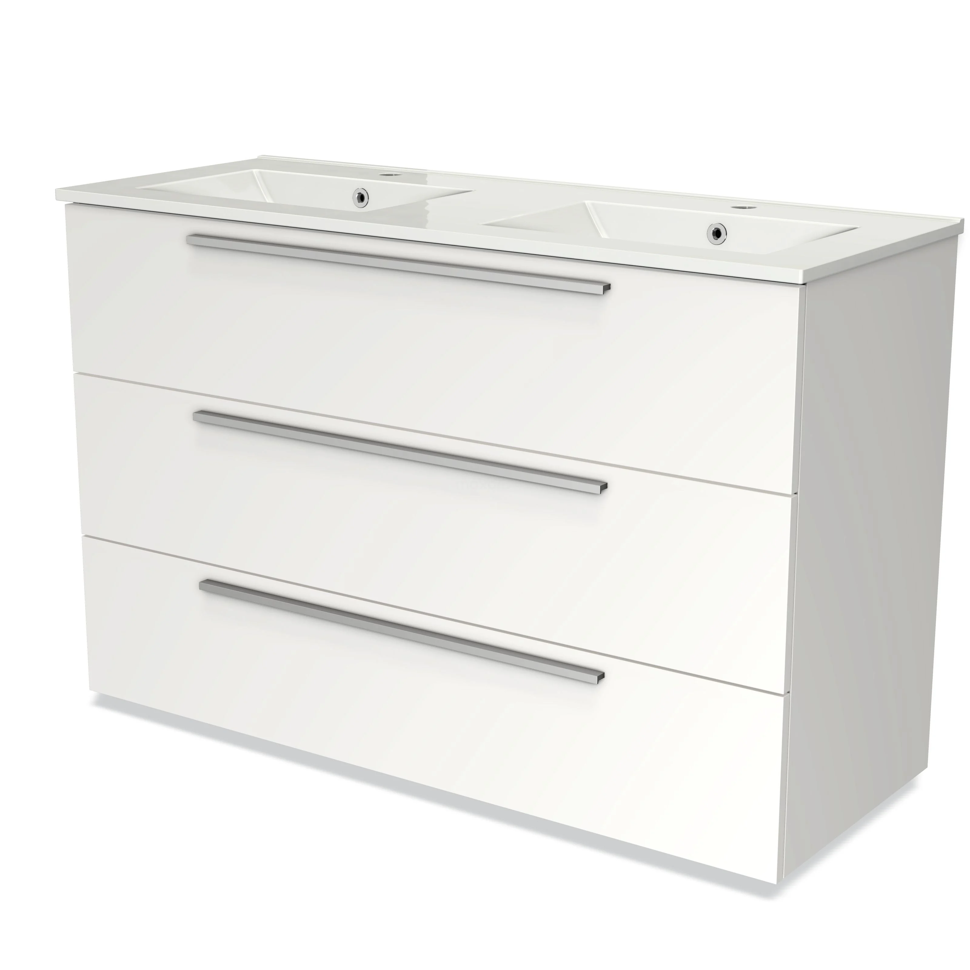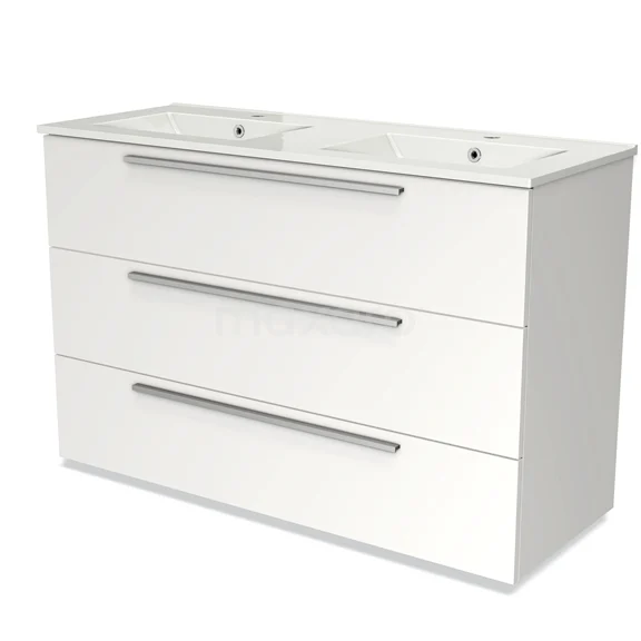 Modulo Bathroom furniture with sink | 120 cm Matte white Flat front Ceramic 3 drawers