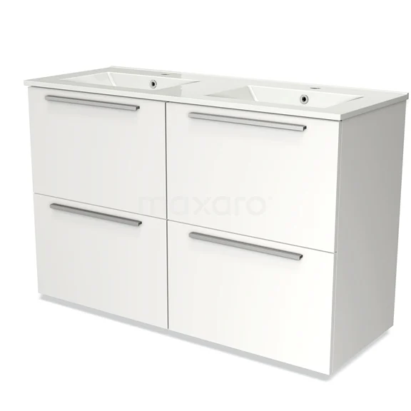 Modulo Bathroom furniture with sink | 120 cm Matte white Flat front Ceramic 4 high drawers