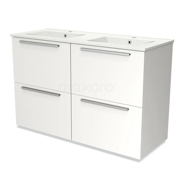 Modulo Bathroom furniture with sink | 120 cm Matte white Flat front Ceramic 4 high drawers