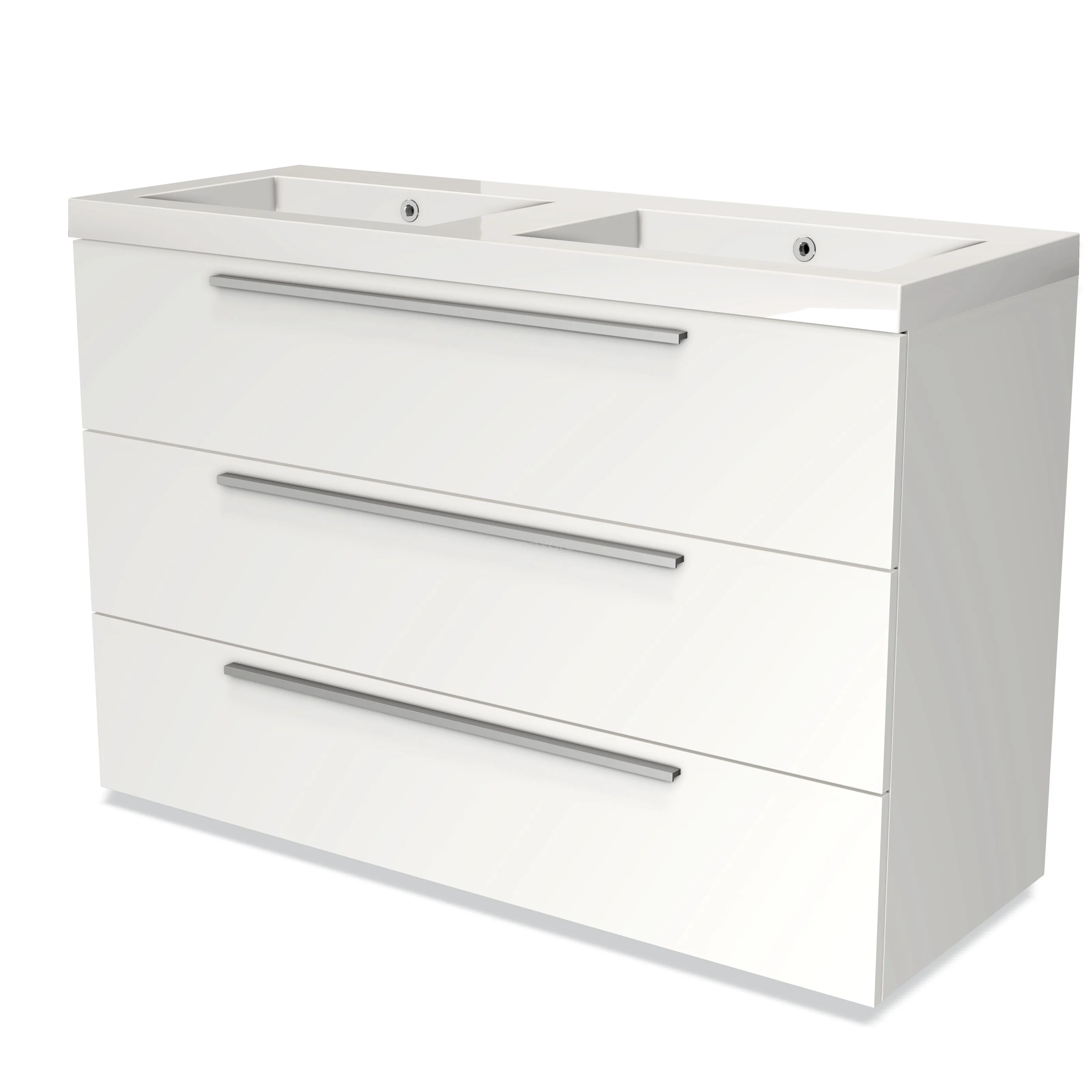 Modulo Bathroom furniture with sink | 120 cm Matte white Flat front Mineral marble 3 drawers
