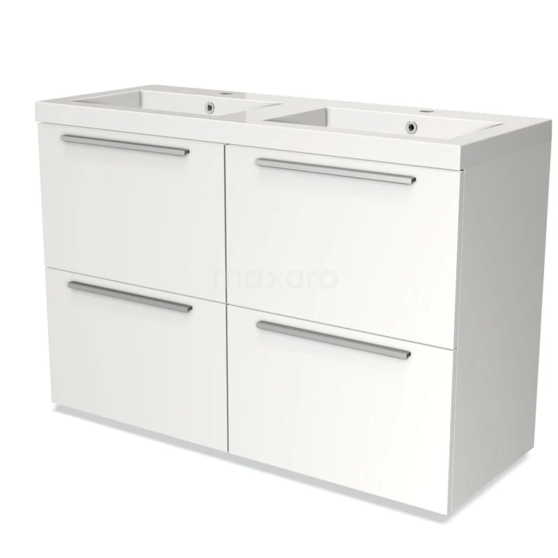 Modulo Bathroom furniture with sink | 120 cm Matte white Flat front Mineral marble 4 high drawers