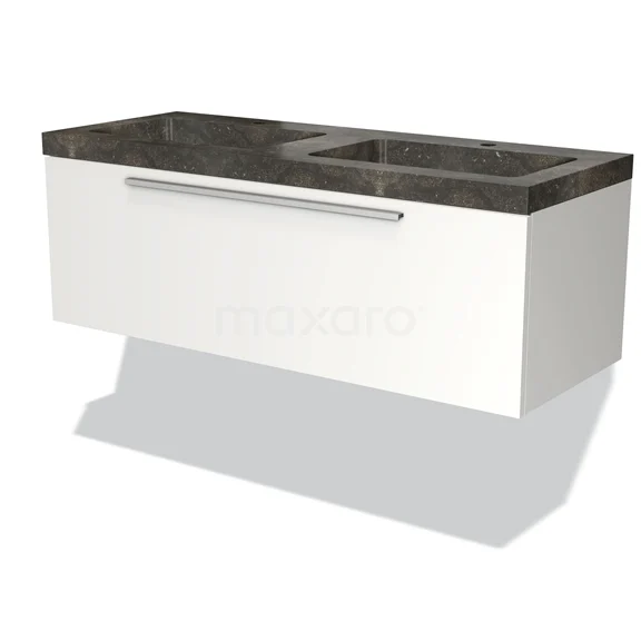 Modulo Bathroom furniture with sink | 120 cm Matte white Flat front Natural stone 1 drawer