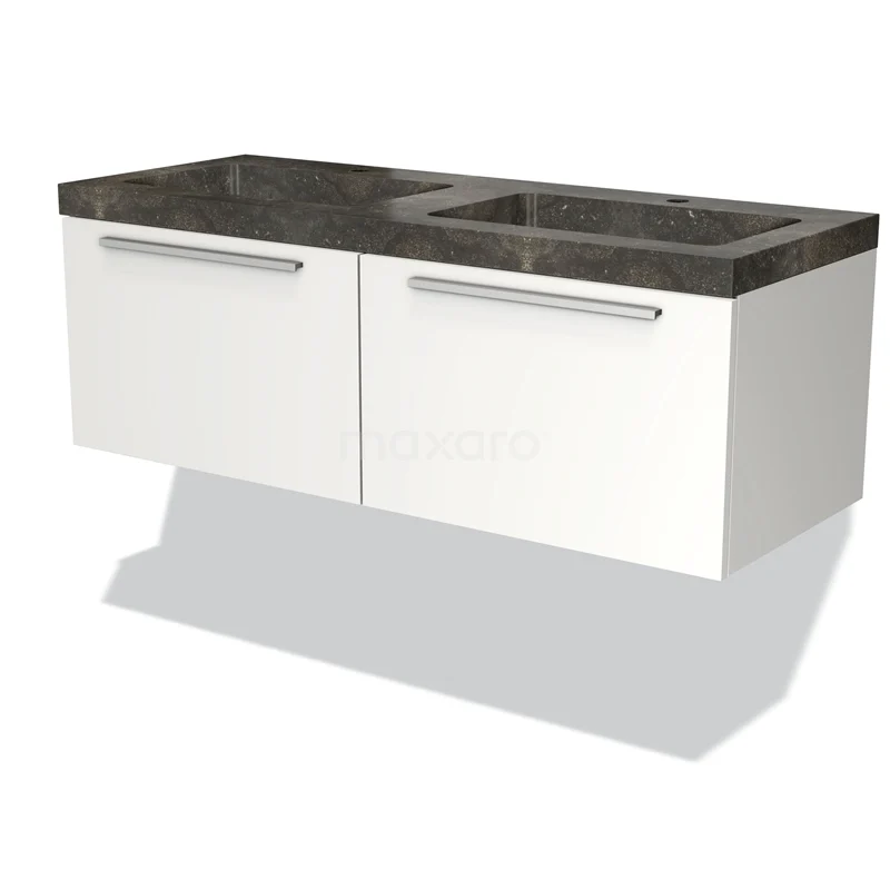 Modulo Bathroom furniture with sink | 120 cm Matte white Flat front Natural stone 2 Side-by-side drawers