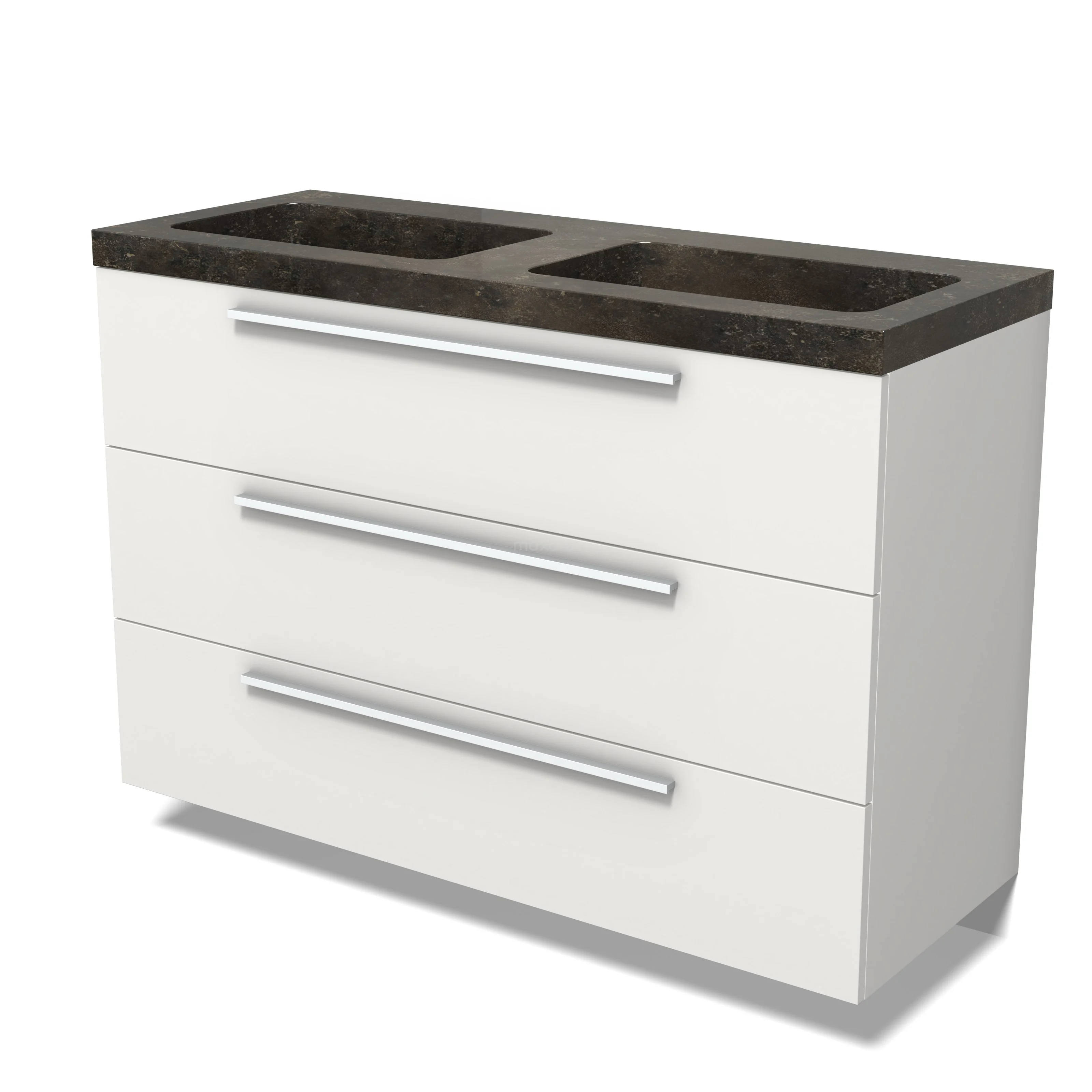 Modulo Bathroom furniture with sink | 120 cm Matte white Flat front Natural stone 3 drawers