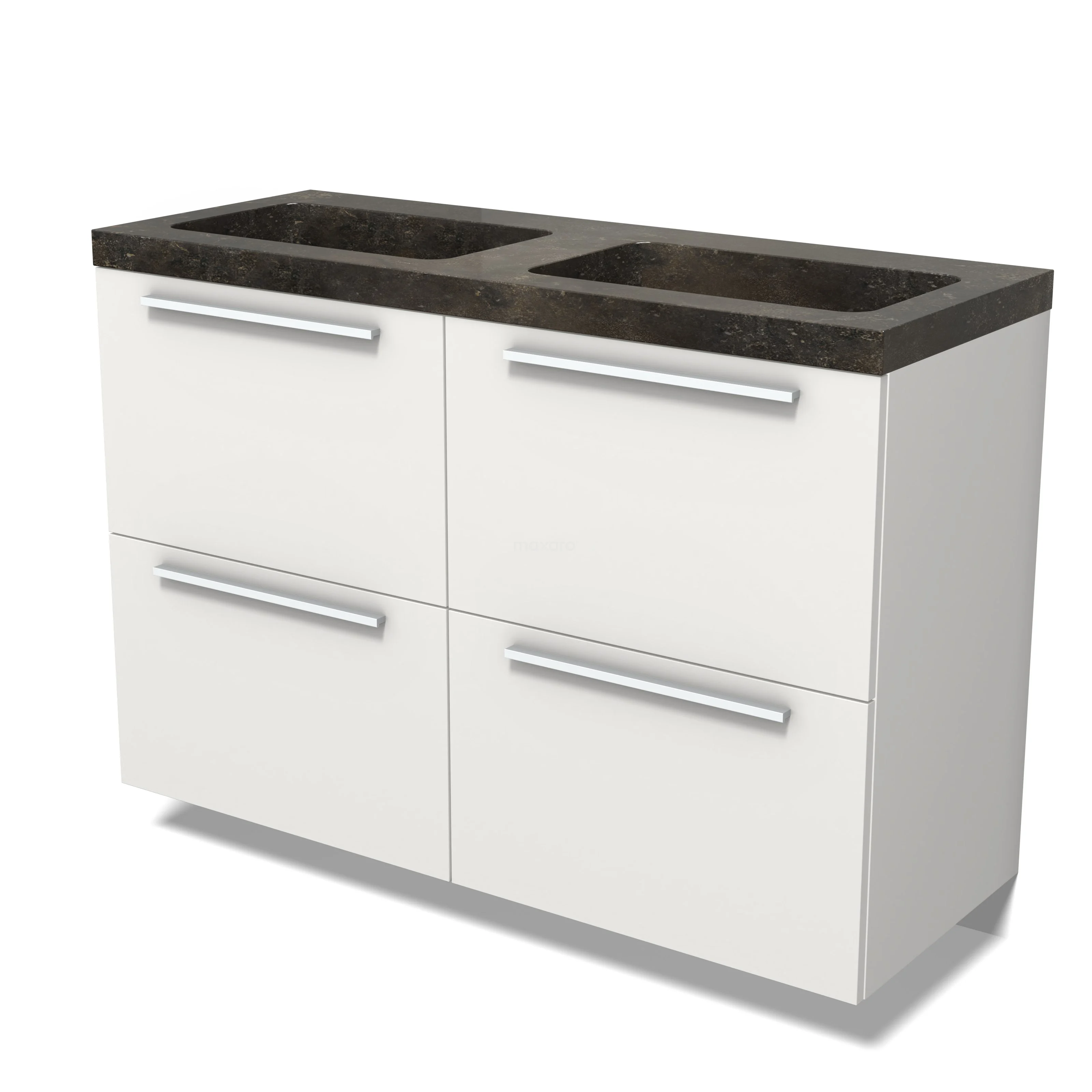 Modulo Bathroom furniture with sink | 120 cm Matte white Flat front Natural stone 4 high drawers