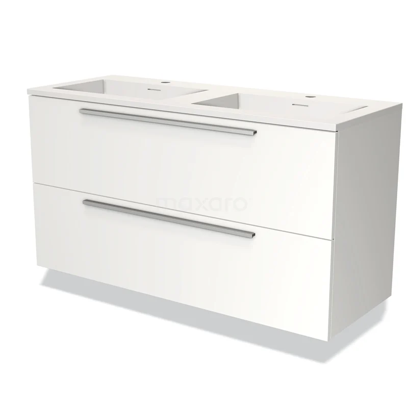Modulo Bathroom furniture with sink | 120 cm Matte white Flat front Solid surface 2 Stacked drawers