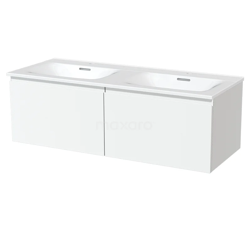 Modulo Bathroom furniture with sink | 120 cm Matte white Handle-less front Ceramic 2 Side-by-side drawers