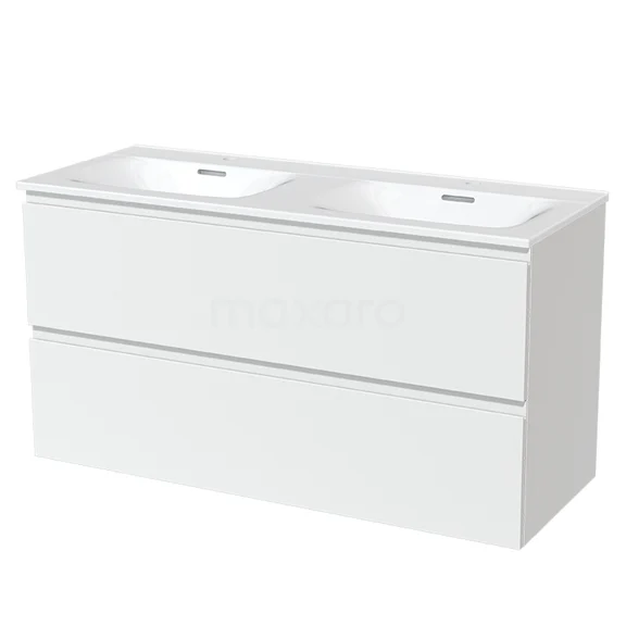 Modulo Bathroom furniture with sink | 120 cm Matte white Handle-less front Ceramic 2 Stacked drawers