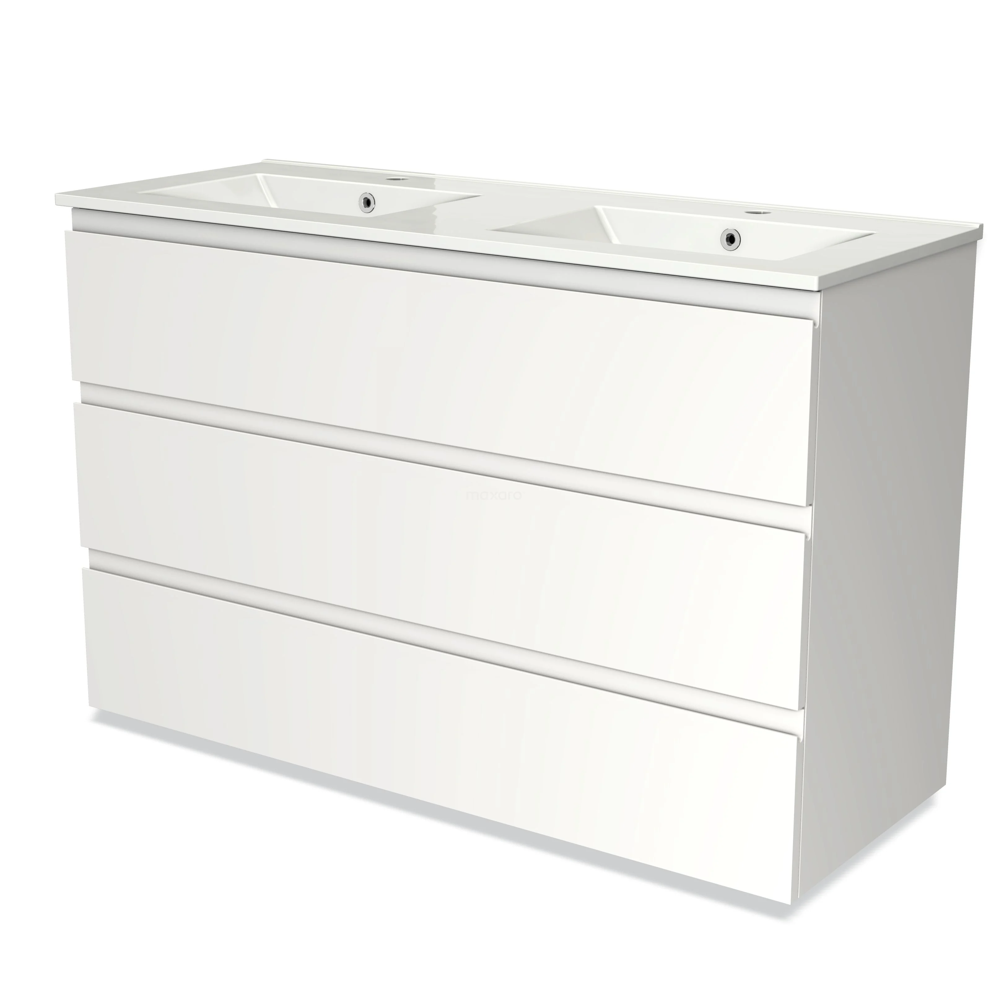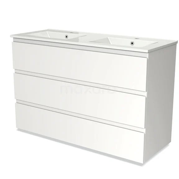Modulo Bathroom furniture with sink | 120 cm Matte white Handle-less front Ceramic 3 drawers
