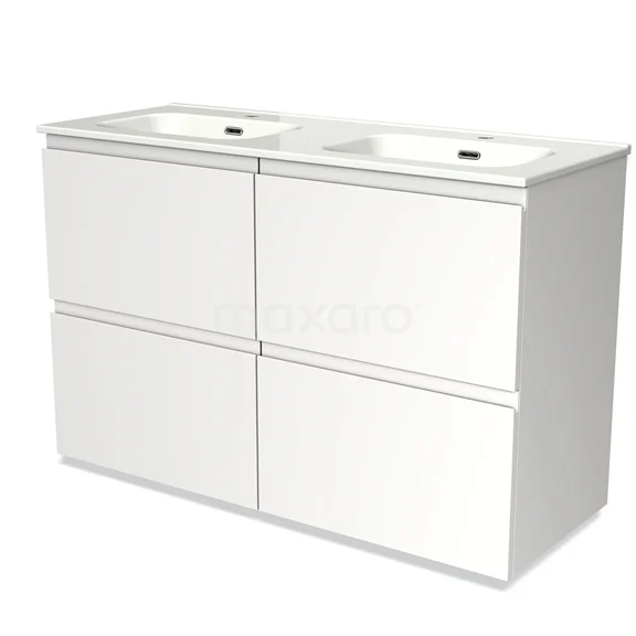 Modulo Bathroom furniture with sink | 120 cm Matte white Handle-less front Ceramic 4 high drawers