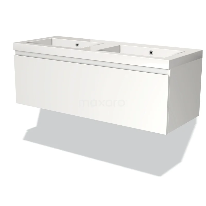Modulo Bathroom furniture with sink | 120 cm Matte white Handle-less front Mineral marble 1 drawer
