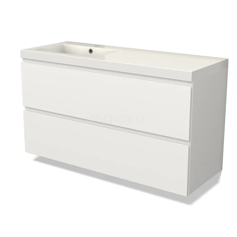 Modulo Bathroom furniture with sink | 120 cm Matte white Handle-less front Mineral marble 2 Stacked drawers