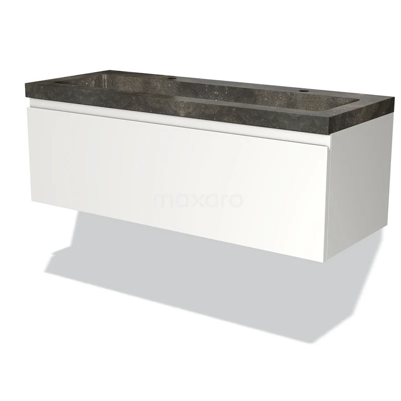 Modulo Bathroom furniture with sink | 120 cm Matte white Handle-less front Natural stone 1 drawer