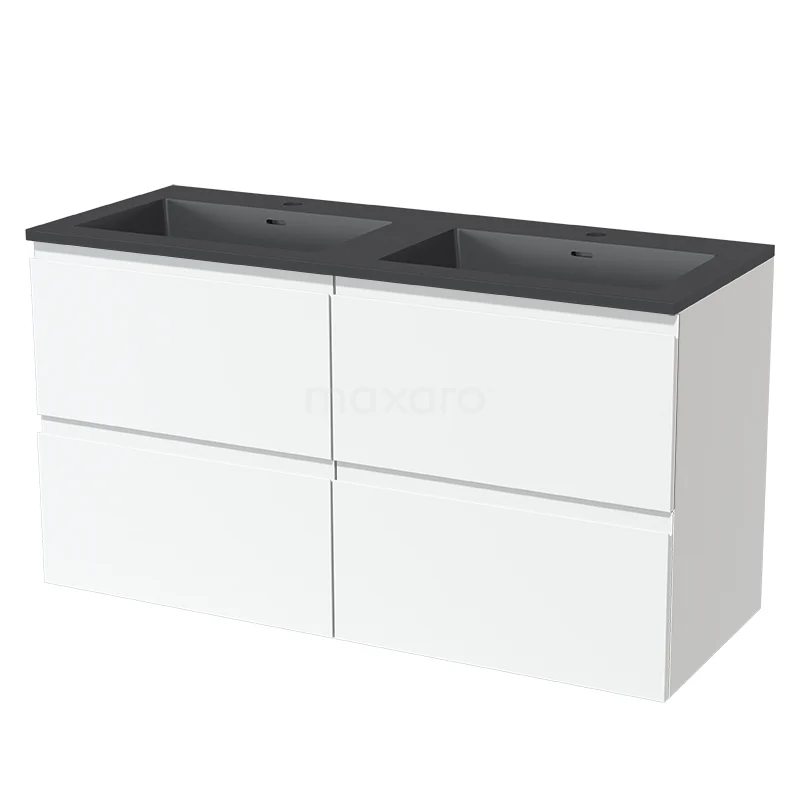 Modulo Bathroom furniture with sink | 120 cm Matte white Handle-less front Quartz 4 drawers