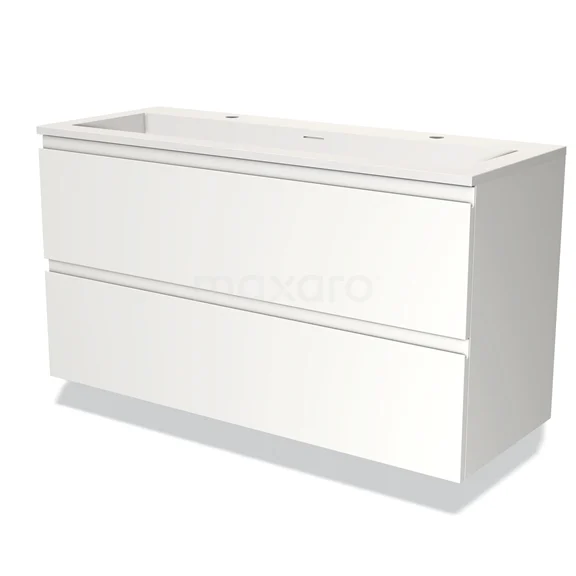 Modulo Bathroom furniture with sink | 120 cm Matte white Handle-less front Solid surface 2 Stacked drawers