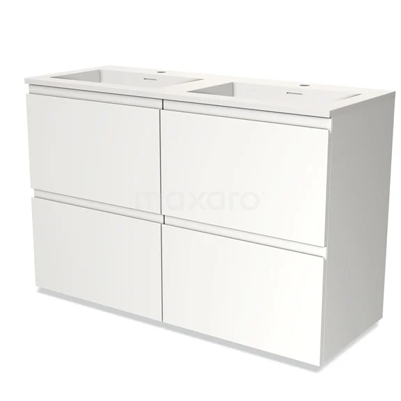 Modulo Bathroom furniture with sink | 120 cm Matte white Handle-less front Solid surface 4 high drawers