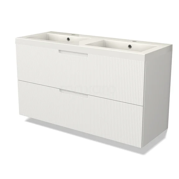 Modulo Bathroom furniture with sink | 120 cm Matte white Line front Mineral marble 2 Stacked drawers