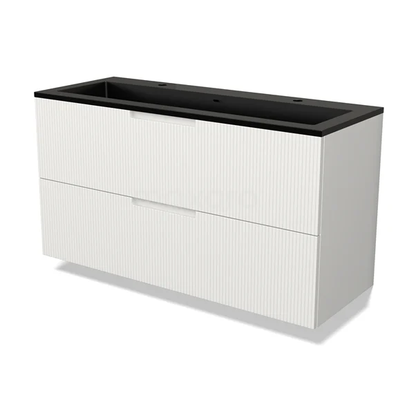 Modulo Bathroom furniture with sink | 120 cm Matte white Line front Quartz 2 Stacked drawers